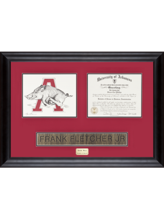 The Deluxe Diploma Set features protective glass and acid free matting, as well as customizable frame, matte, print and unique name rubbing straight from the Senior Walk!